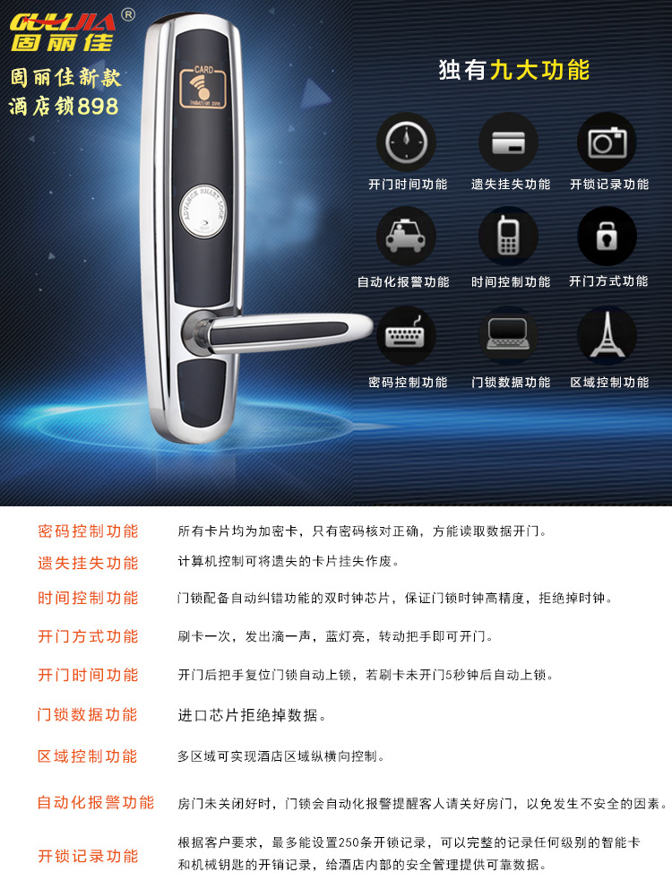 固麗佳智能酒店鎖優(yōu)勢(shì)特點(diǎn):